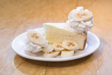 What it is: Banana cream cheesecake topped with Bavarian cream and sliced banana