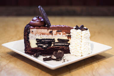 What it is: Oreo cookies baked into creamy cheesecake with layers of fudge cake, Oreo cookie mousse, and topped with milk chocolate icing